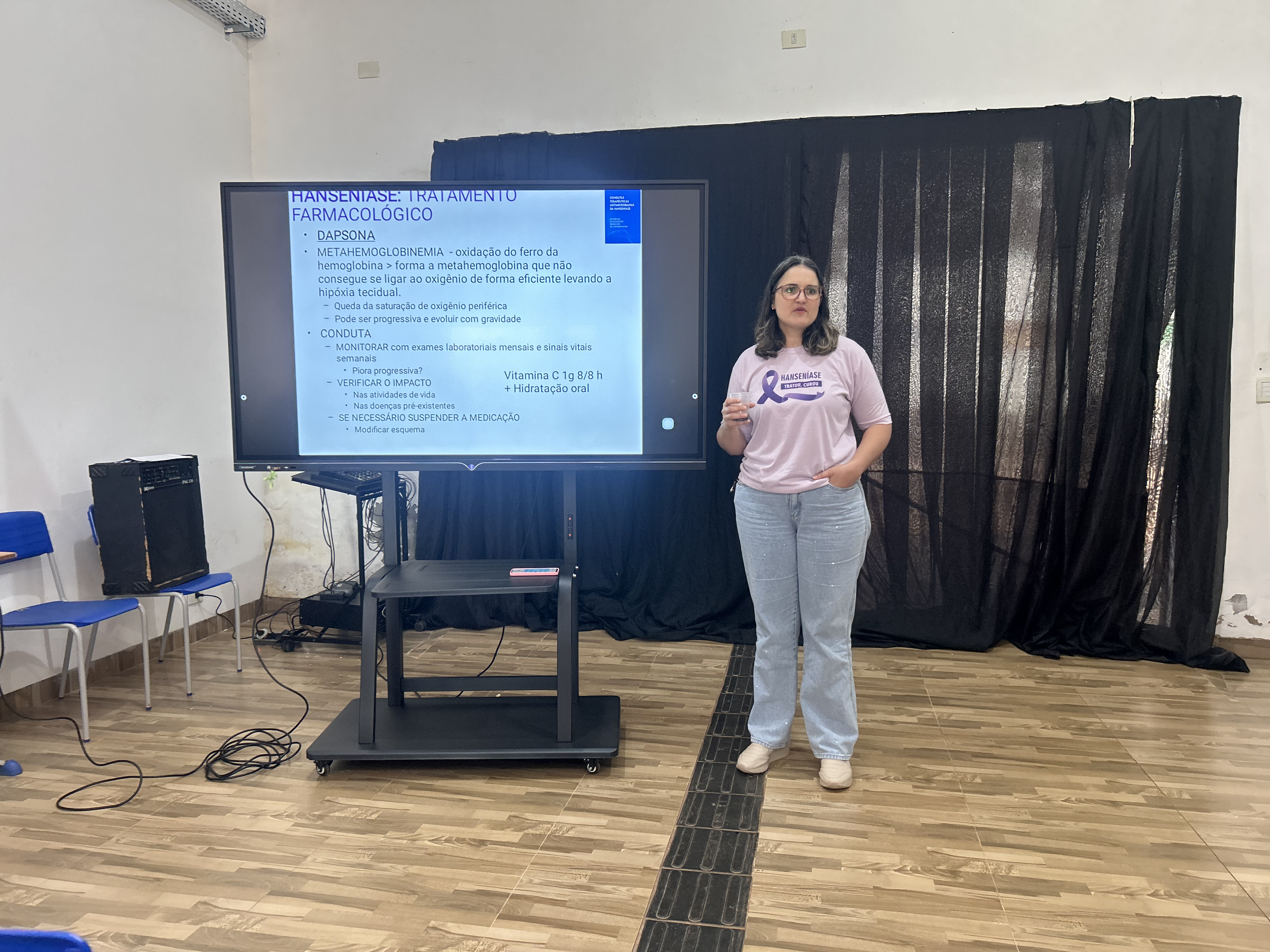 Durante a atividade, foram revisados os protocolos do Ministério da Saúde e apresentados os novos consensos da Sociedade Brasileira de Hansenologia. A médica Andréia Tamborelli destacou a importância do acompanhamento contínuo, devido ao longo tempo de tratamento e à possibilidade de complicações.