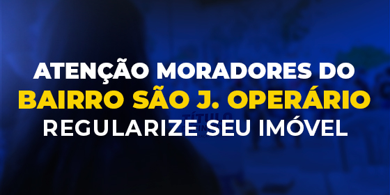 A população do Bairro São José Operário, têm até o dia 26 de janeiro para aproveitar a oportunidade de regularizar suas propriedades e obter o título definitivo do imóvel. O atendimento está sendo realizado na Escola Estadual Ana Néri, das 8h às 12h e das 13h às 17h, pelos servidores da GeoGis, empresa contratada pela prefeitura para realizar o processo.
