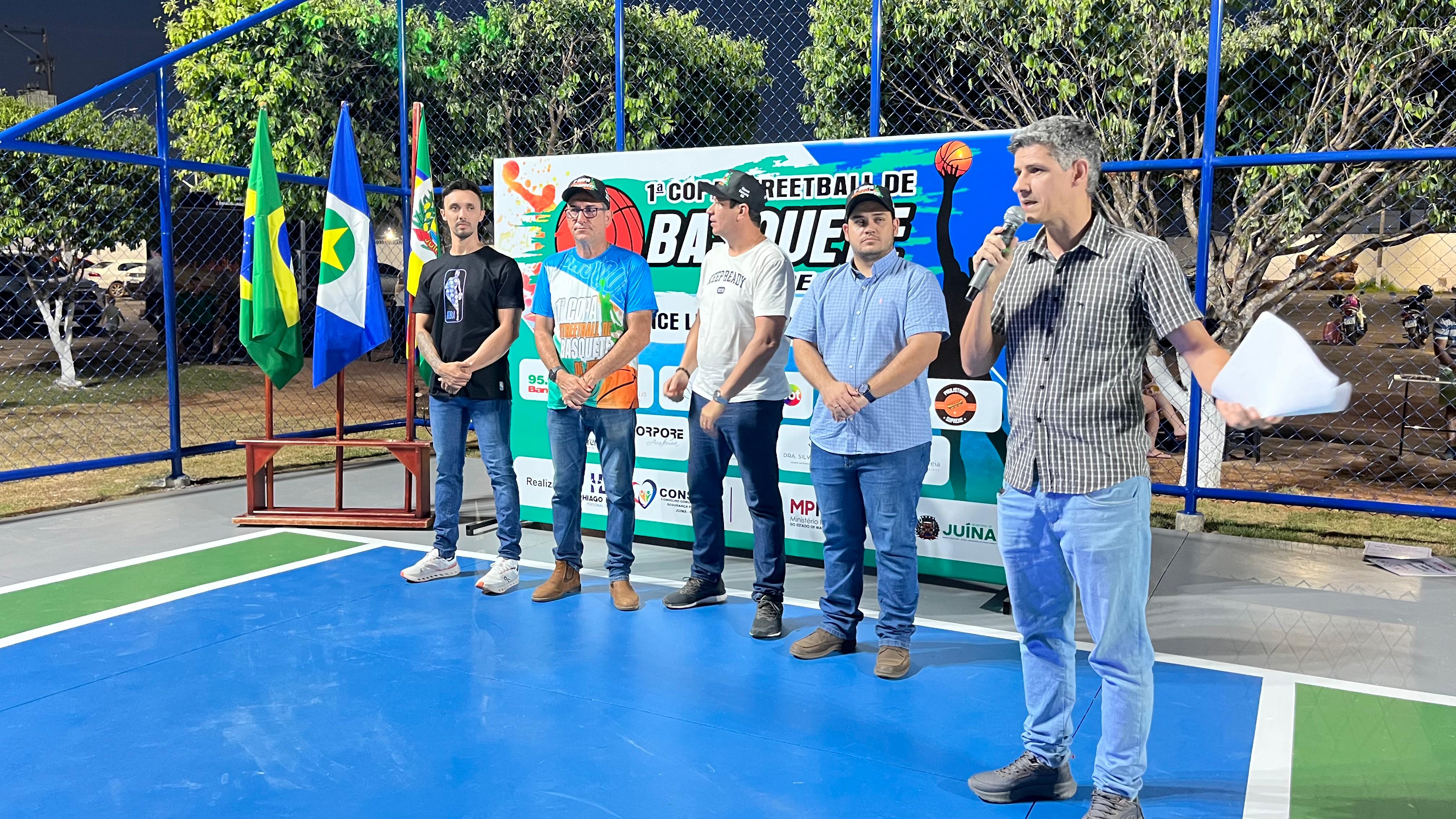 O Ministério Público, o Conselho Comunitário de Segurança Pública (CONSEG) e a Prefeitura de Juína, por meio da Secretaria Municipal de Esportes, realizaram na última sexta-feira, dia 22, a inauguração oficial da primeira quadra de Streetball da cidade. A entrega do novo espaço, fruto de uma demanda do CONSEG e viabilizada com recursos de Termo de Ajustamento de Conduta (TAC), marca mais um passo no fortalecimento das políticas públicas voltadas ao esporte, ao lazer e à inclusão social, reunindo atletas locais e visitantes em um evento que também deu início à 1ª Copa de Streetball de Juína.