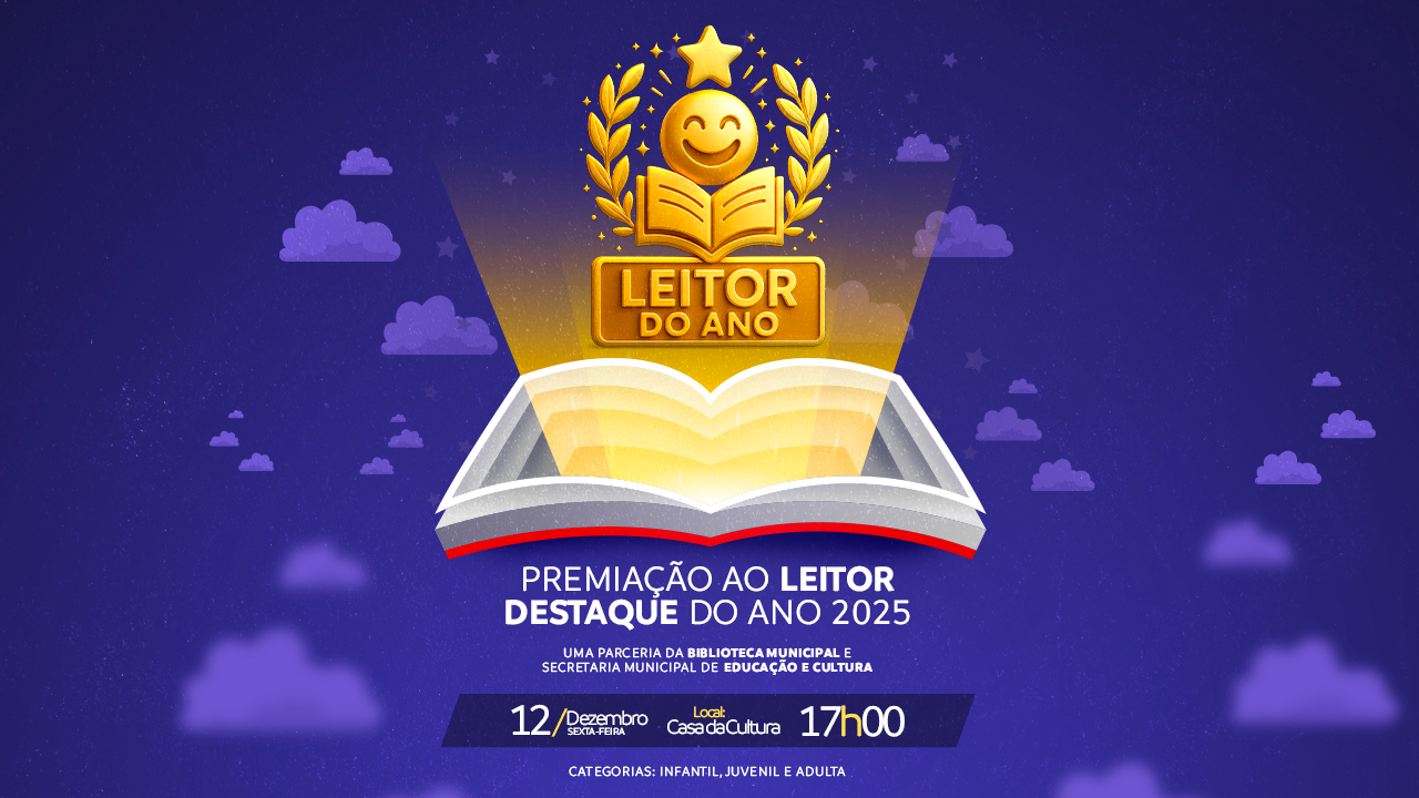 A Prefeitura de Juína, por meio da Secretaria Municipal de Cultura, realiza no próximo dia 12 de dezembro a premiação do concurso “Leitor Destaque do Ano”, promovido pela Biblioteca Municipal. O evento, que acontecerá na Casa da Cultura a partir das 17h, busca valorizar os leitores mais assíduos e estimular ainda mais o hábito da leitura no município.